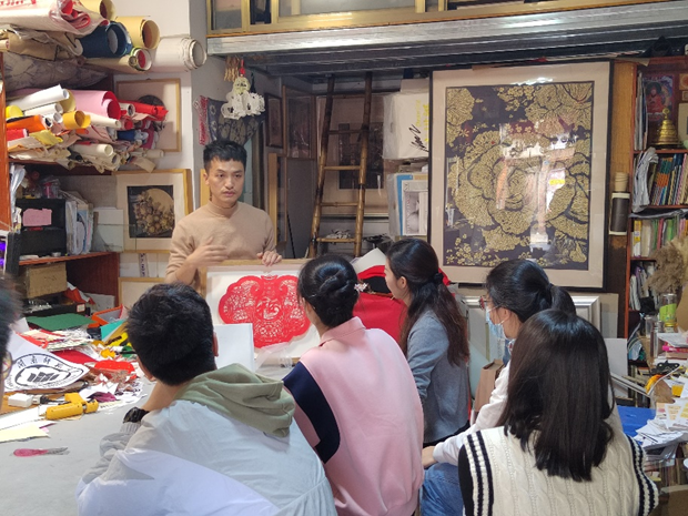 为贯彻落实党的二十大精神,深入学习领悟习近平文化思想,进一步保护和弘扬闽南非遗文化,深刻把握闽南非遗文化的历史内核与文化魅力,引导党支部成员坚定文化自信,12月10日下午,我院本科生第五党支部在支部书记陈燕云老师的带领下,前往漳州市黄际宇文化产品设计工作室开展“非遗剪纸传礼道,文化赋能强党性”闽南文化传承主题党日活动。