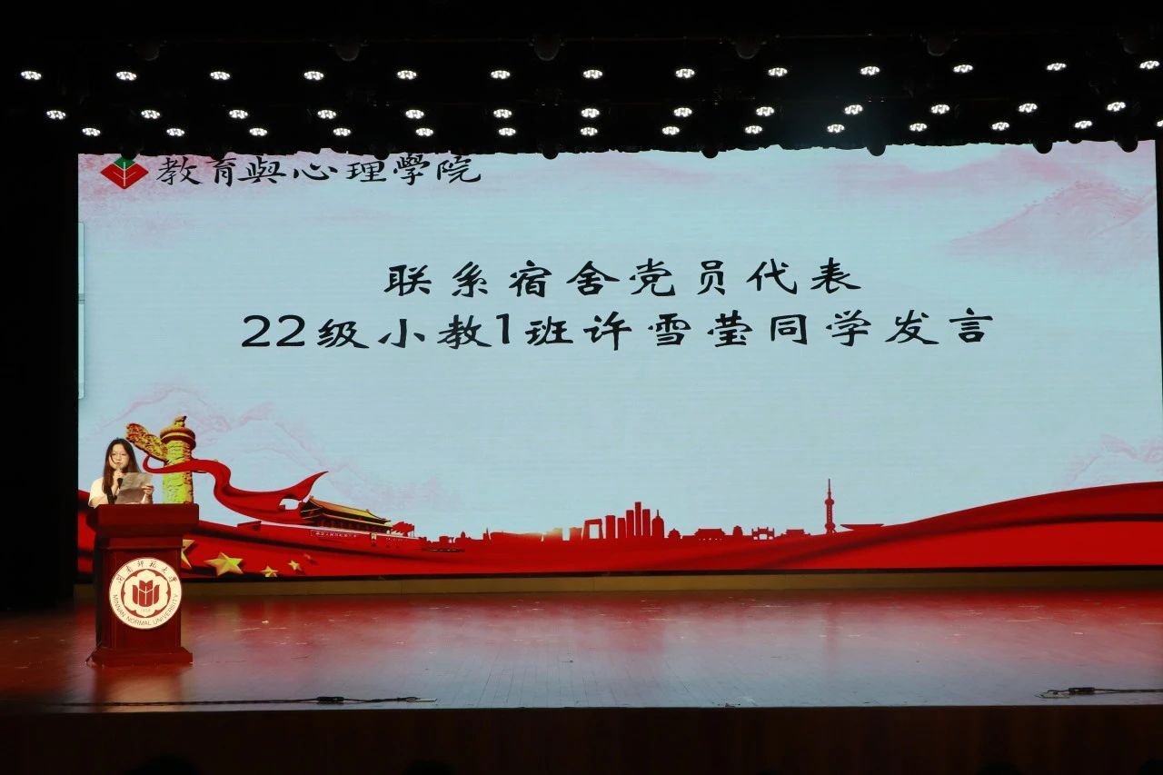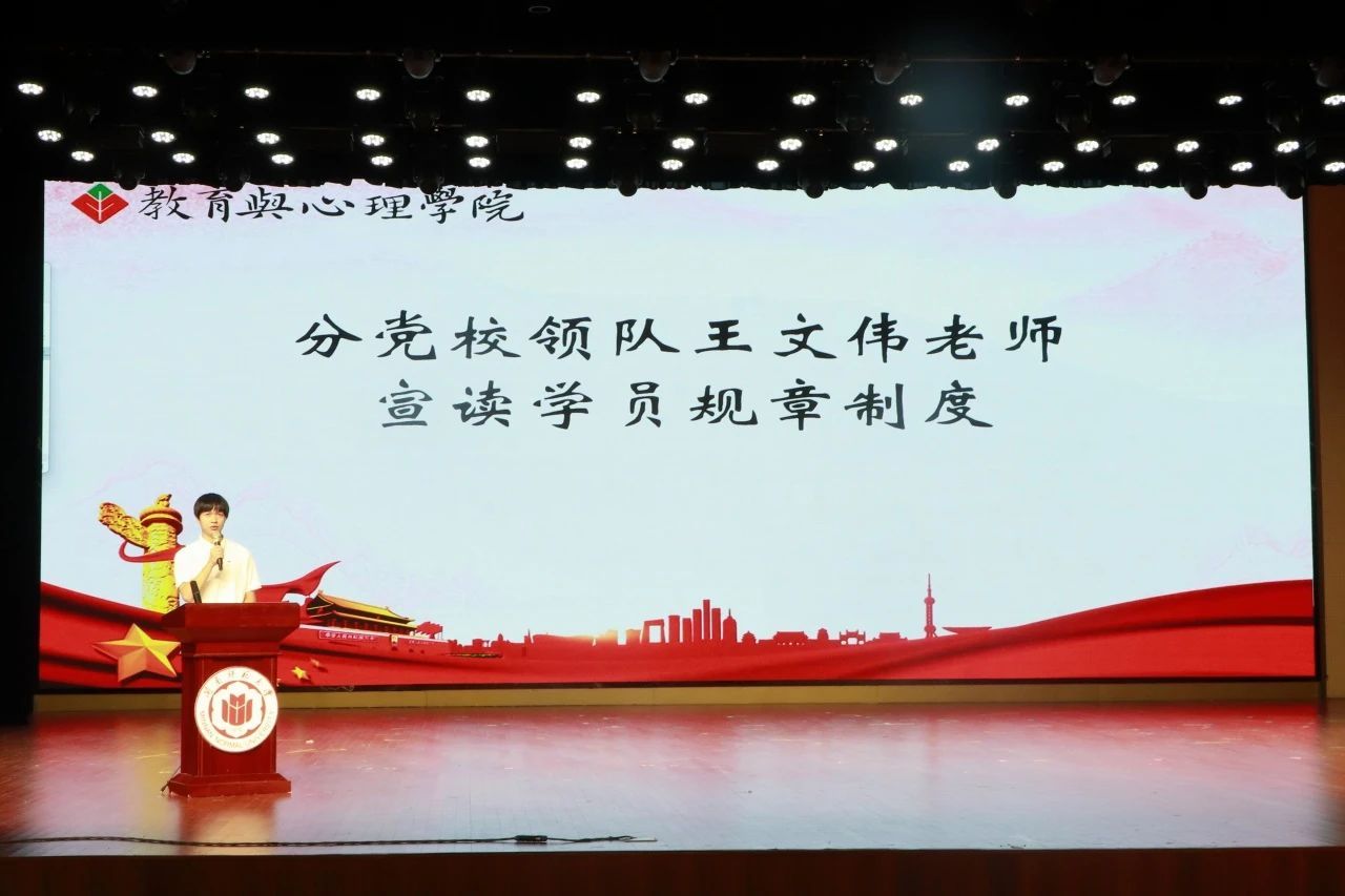 入党积极分子培训班领队王文伟老师宣读了分党校学员规章制度,2024级小学教育专业吕弘毅、2022级小学教育专业许雪莹、2024级心理专业许文静等分别作为代表发言。
