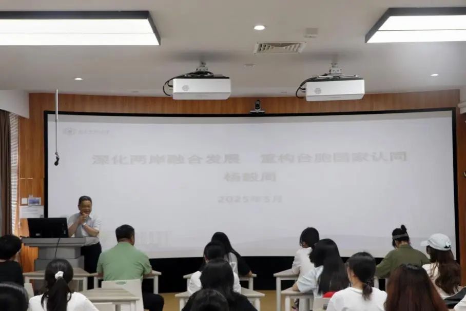 为推动两岸关系和平发展,增进高校师生对台胞国家认同重构的理解,5月23日上午,中华全国台湾同胞联谊会党组成员、副会长杨毅周应圆山学院邀请,在创业楼418为我校师生作《深化两岸融合发展 重构台胞国家认同》的专题讲座。本次讲座由圆山学院、太阳集团tyc33455共同主办,讲座由太阳集团tyc33455党委书记郑文海主持,我校师生代表参加讲座。