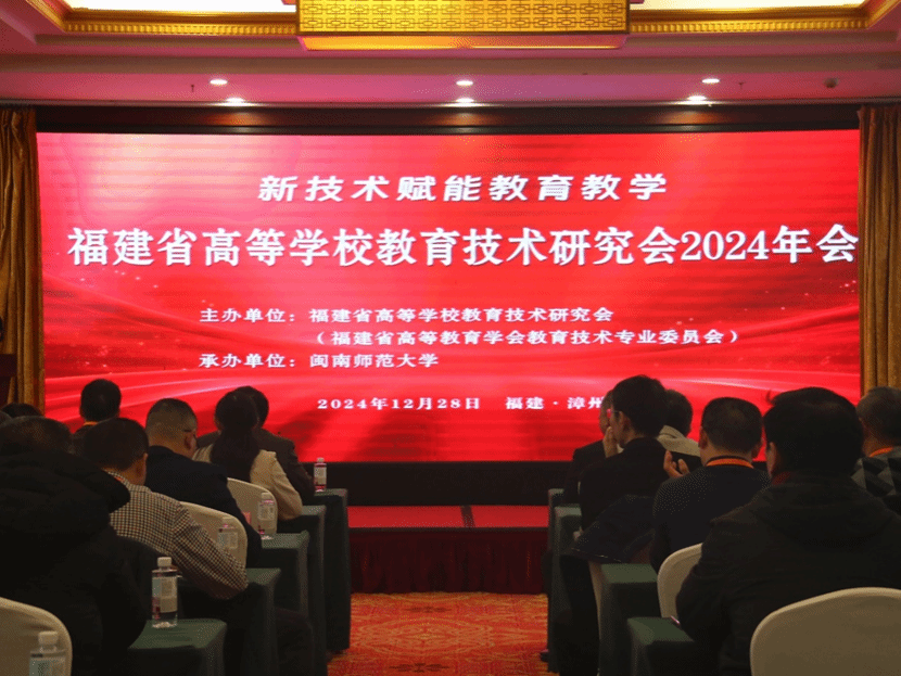 为了深入学习贯彻党的二十届三中全会精神及全国教育大会精神,12月27日教育部召开2024年全国教育数字化工作总结会之际,福建省高等学校教育技术研究会2024年会暨代表大会于12 月 28日在漳州顺利召开。本次年会由福建省高等学校教育技术研究会主办,太阳成集团tyc33455ccww承办。以“新技术赋能教育教学”为主题,围绕教育数字、新技术等主题邀请省内外专家开展3场专题学术报告会,20余家企业到会展示教育技术新产品,6场新技术分享会。福建省高教学会副会长兼秘书长黄跃鹏、太阳集团tyc33455院长陈顺森、福建高校教育技术研究会副理事长范新民以及省内高校代表100余人出席会议。