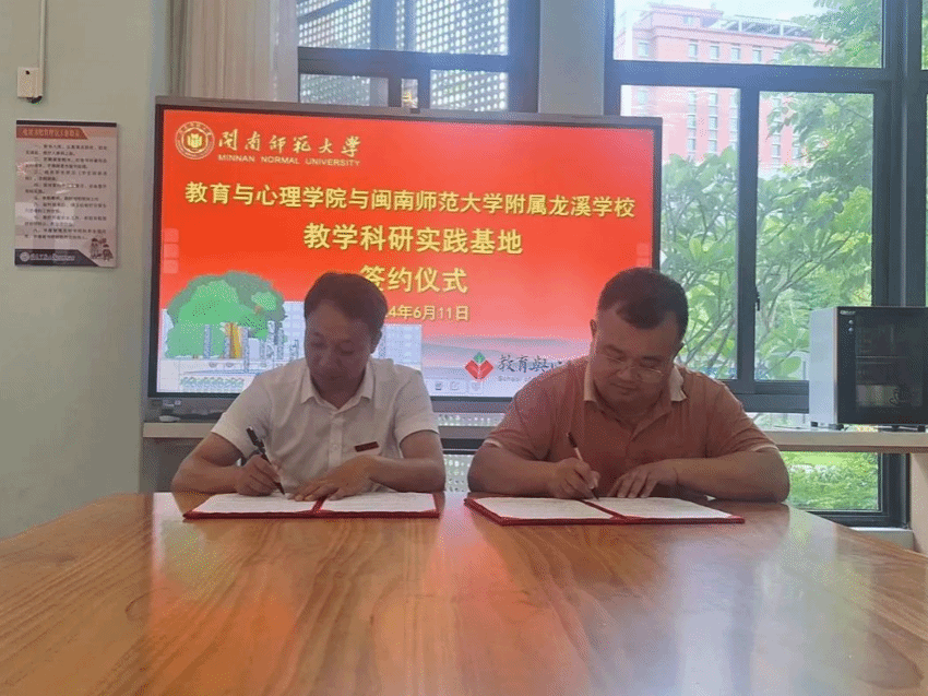 2024611日下午,学校社会合作处副处长朱志成、我院副院长黄亮、附属学校管理科科长田克湟,心理学系副主任陈志英、初等教育系副主任陈国仕一行赴太阳成集团tyc33455ccww附属龙溪学校举行教学科研实践基地签约和授牌仪式。太阳成集团tyc33455ccww附属龙溪学校校长张武夷、副校长傅丽蓉、部分教师和我院实习生参加了此次仪式。
