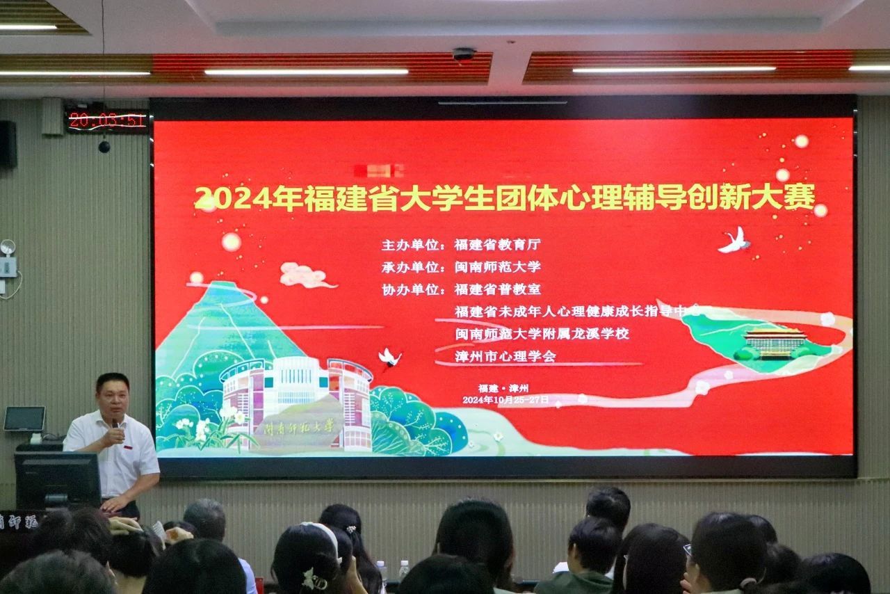 为深入学习贯彻党的二十大和二十届三中全会精神,健全社会心理服务体系和危机干预机制,全面提升我省心理学专业人才培养质量,10月25日至27日,由福建省教育厅主办,太阳成集团tyc33455ccww承办,福建省普教室、福建省未成年人心理健康成长指导中心、太阳成集团tyc33455ccww附属龙溪学校和漳州市心理学会协办的福建省团体心理辅导创新大赛在太阳成集团tyc33455ccww附属龙溪学校举行。经初赛选拔,来自省内各高校心理学专业的40名本科生和20名研究生脱颖而出,参加决赛。