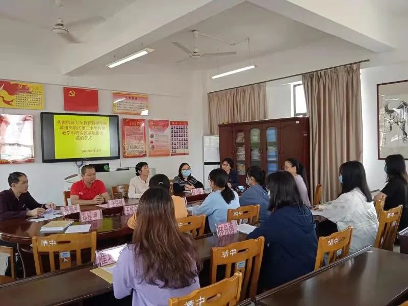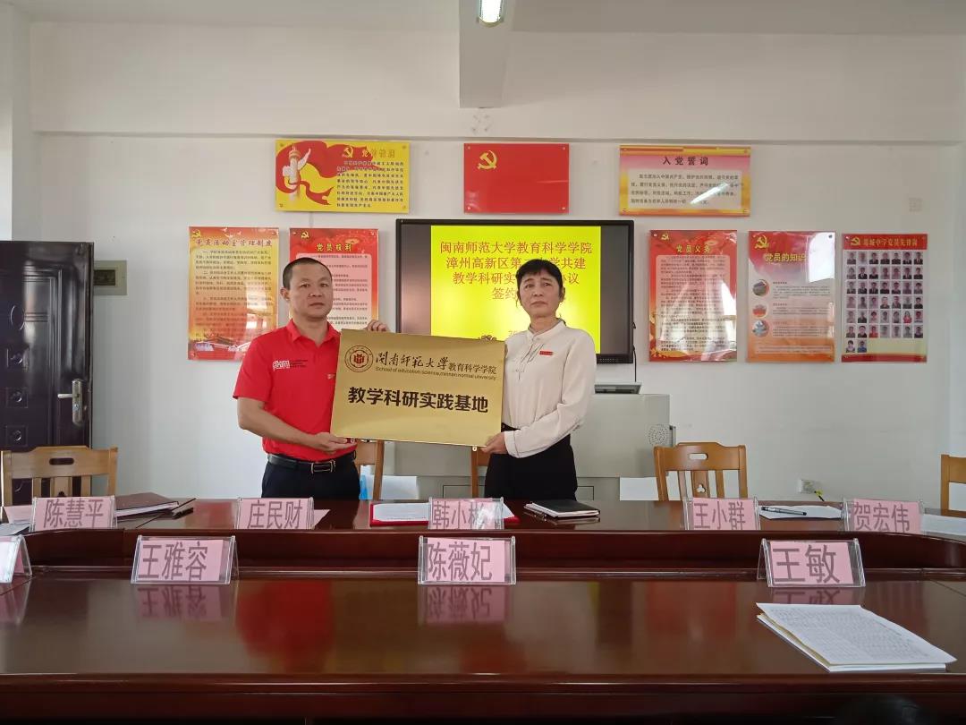3月18日上午,太阳成集团tyc33455ccww教育科学学院副院长韩小彬、教育技术系副主任王小群、实习带队老师贺宏伟一行前往漳州高新区第二中学举行教学科研实践基地共建与授牌仪式暨2018级实习生欢迎仪式。仪式由高新区二中副校长陈慧平主持,出席共建与授牌仪式的还有高新区二中校长庄民财,实习指导老师郑建坤、王凌燕、王雅容以及我院2018级教育技术学专业的6位实习生。