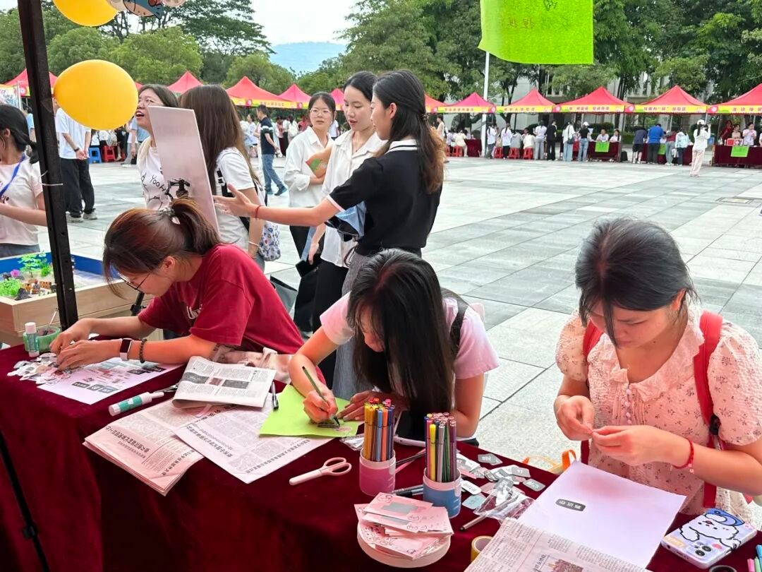 活动现场还设有拍照打卡区,参与者可手持作品与创意背景板合影留念,并通过完成活动任务兑换刮刮乐、定制手链、减压捏捏乐等特色奖励,气氛热烈,欢声不断。