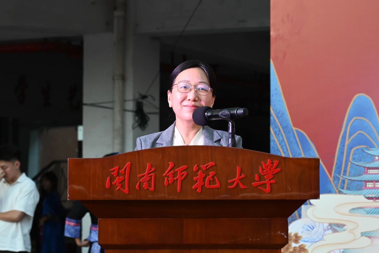 廖志丹在致辞中指出,高校是促进民族团结进步的重要纽带,是铸牢中华民族共同体意识思想基础的重要阵地。校党委始终以习近平总书记关于加强和改进民族工作的重要思想为根本遵循,将铸牢中华民族共同体意识深度融入人才培养、科学研究、社会服务、文化传承创新、国际交流合作等各方面,构建起“思想引领铸魂、文化交融聚力、实践育人固本”的民族工作体系。自2016年起,学校累计培养十届390余名少数民族预科生,通过“文化适应+学业衔接+思想引领”三维管理模式,强化文化浸润、师资保障与人文关怀,助力学生成长成才。她表示,希望同学们能够将“石榴籽”紧紧相拥的理念深植于心,把个人理想融入国家发展大局,在民族复兴的伟大征程中书写青春篇章。