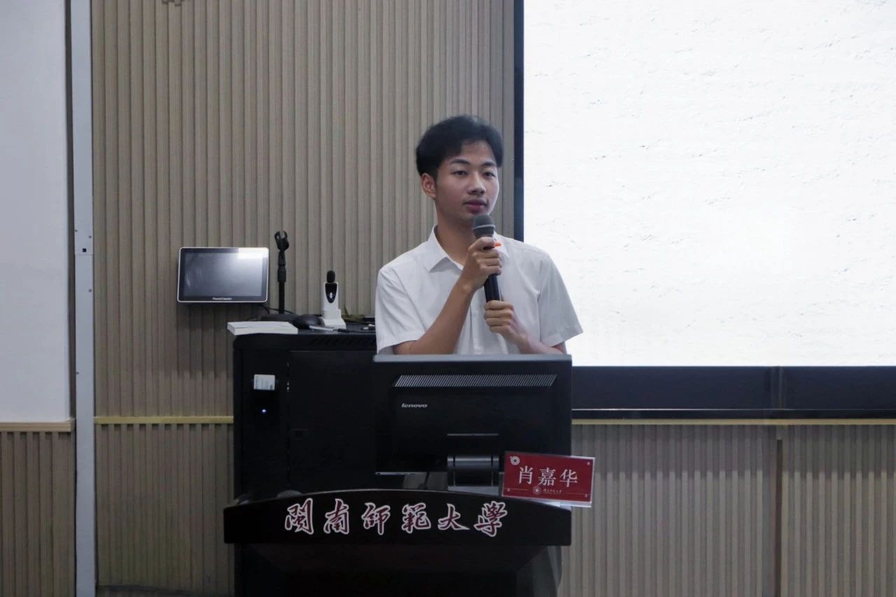 陈睿以“传师范经验,做未来明师”为主题进行经验分享。他围绕个人成长转变、教学技能进阶两大板块展开分享,讲述自己从大一迷茫师范生逐步成长为即将毕业准教师的历程,介绍“多思考”的学习方式和“敢尝试”的实践途径。他以“名师亦有,明师更贵”与同学们共勉。